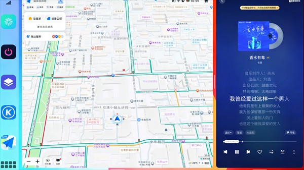 导航悬浮:打开导航后,会自动在主界面或分屏中显示地图,同时不影响音乐播放。