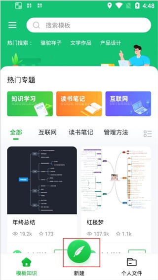 这边有“新建思维导图”“新建文件夹”可以选择;