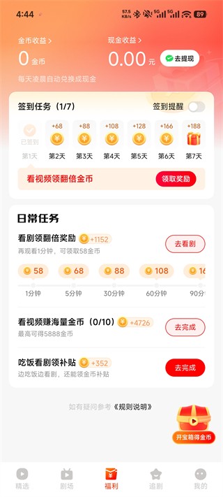 2、日常看剧任务(主要收入)
