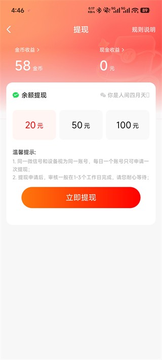 3、金币兑换与提现规则