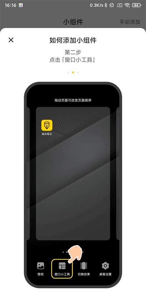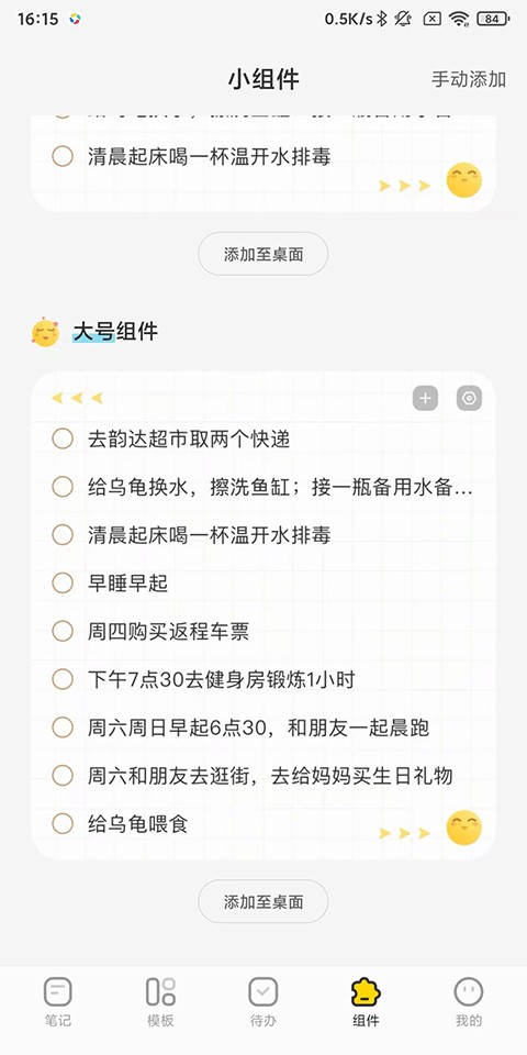 1、打开指尖笔记APP,点击组件-选择组件样式,点击添加至桌面;