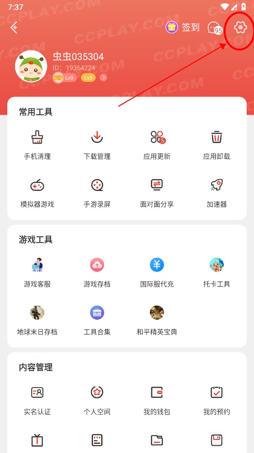 1、双击打开ccplay软件,点击虫友分享;