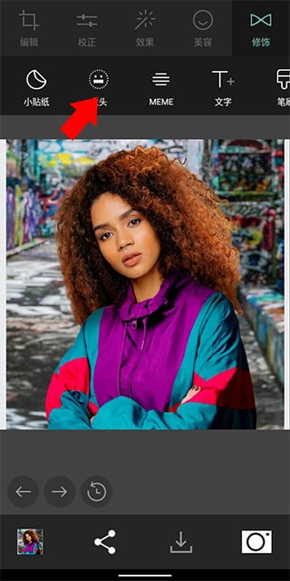 2、选择相应的照片后来到下方界面,点击右上方的修饰按钮