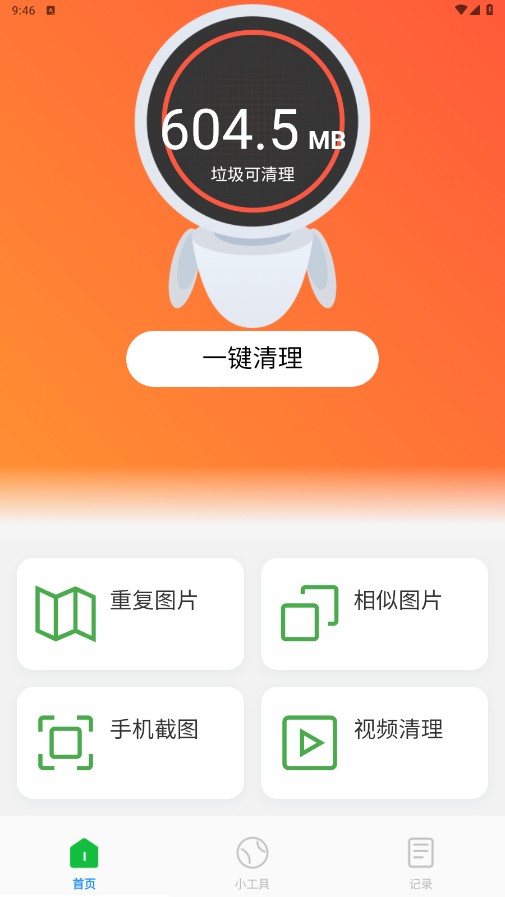 一键清理垃圾非常便捷可对重复图片、相似图片、视频进行清理