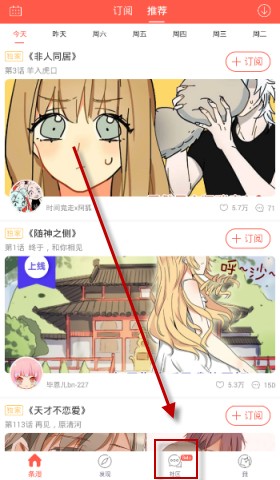 3、点击*上面“推荐”旁边的“下载符号”就可以将今天更新的漫画全部下载啦!(下载完成,下载符号会变成√)