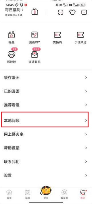 2、下滑屏幕找到【本地阅读】,点击进入就可以了。