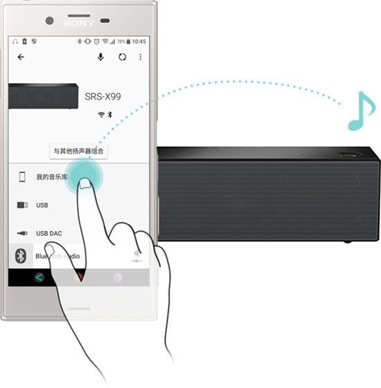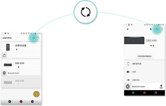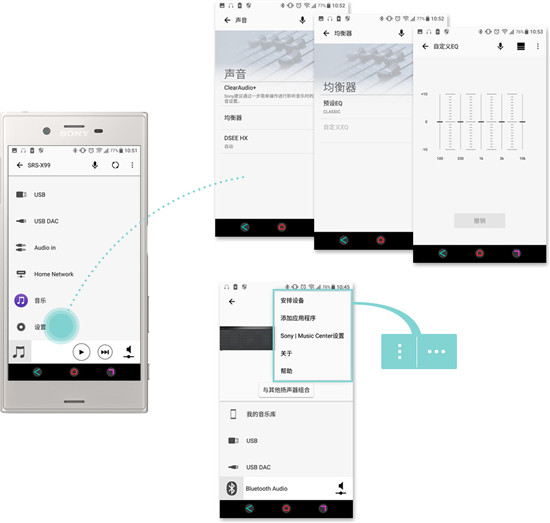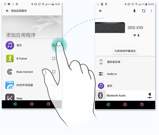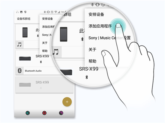 将索尼music center app添加到设备画面,可以播放所连接设备上应用程序中包含的音乐;