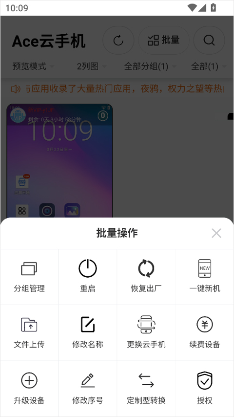 2、领取成功之后,我们就能够看到相应的云手机设备了,接着授予相应的权限;