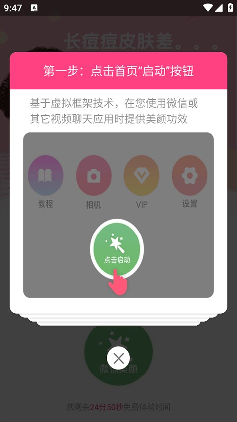 1、打开微微视频美颜助手,点击首页的启动按钮;