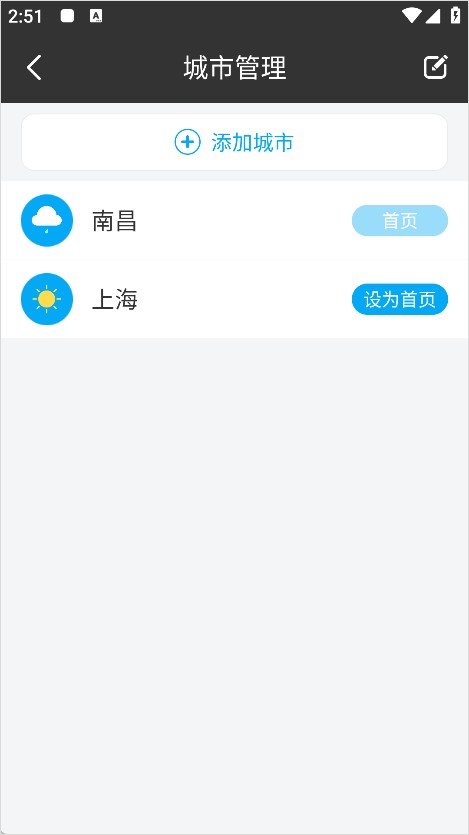 1、操作其实非常的简单,在城市管理功能中长按需要删除的城市