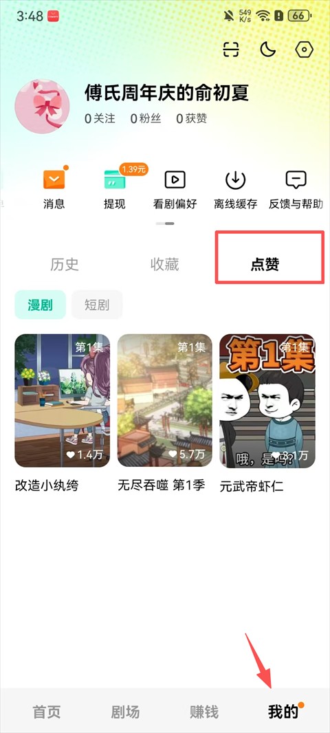 点击【我的】-【点赞】查看已点赞过的短剧。