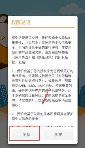 1、初次使用需阅读并同意相关协议条款,确认后即可成功进入应用主界面,开启出行查询服务。