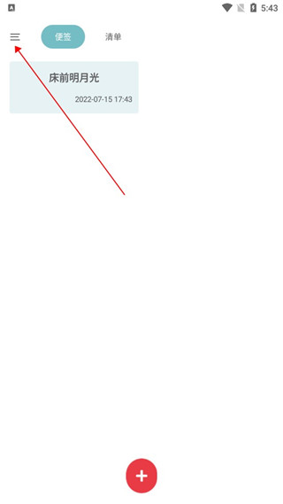1、下载好爱便签最新版后点击打开,进入软件后点击左上角。