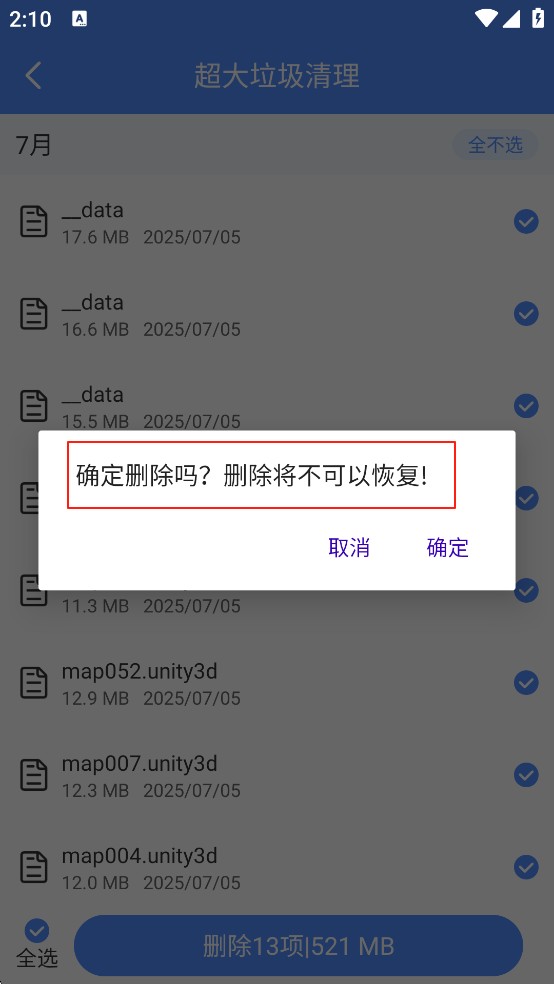 用户在清理手机之后会发现一些文件被误删,但是软件是不支持删除后恢复的,下次清理时可以注意一下有没有什么重要的文件哦!