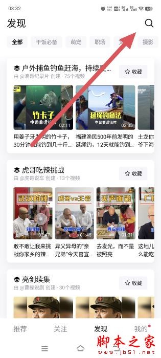 2、在发现界面我们可以看见这里全是系列视频,我们可以根据我们的需求来搜索,我们可以通过上面的特点来寻找,也可以直接通过右上方的搜索栏来进行查找。