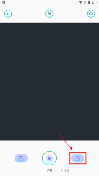 1、打开软件相机功能,点击右下角图示位置;