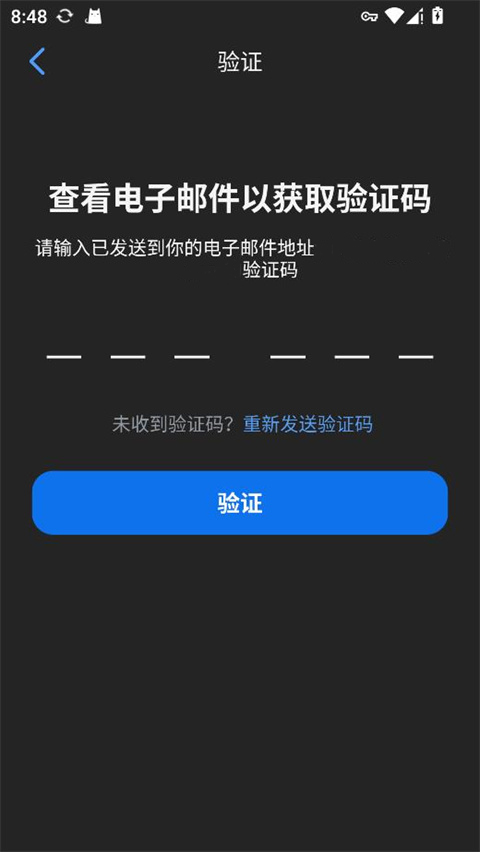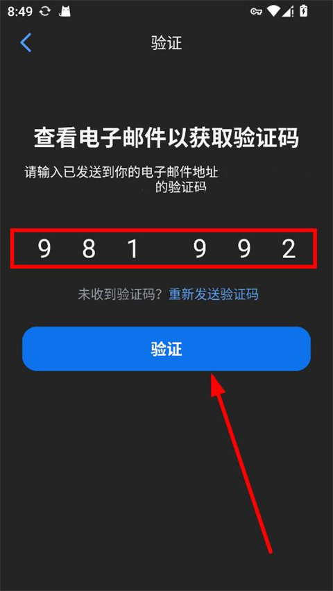 5、输入已发送到您的电子邮件的验证码,点击验证
