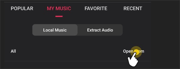 2、点击“我的音乐”,通过选择音乐文件或者视频提取音频来添加自定义音乐