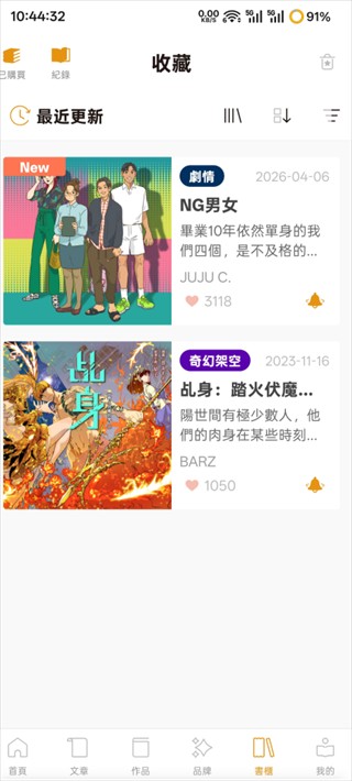2、接着点击下方书柜一栏就可以查看收藏的漫画了,并且在线同步更换设备也不怕找不到想看的漫画了。