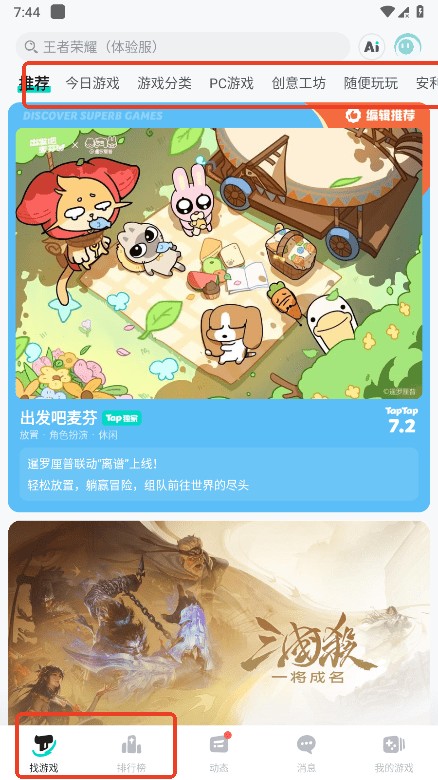 在首页,找到您想玩的游戏,可以点击找游戏或者排行榜,也可以点击头部分类;