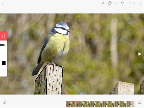 全部画完后,可以点播放按钮预览一下,小鸟就动起来啦。如果觉得哪里不满意,可以长按下面的某一帧缩略图,会弹出菜单,可以删除、复制或者调整这一帧。