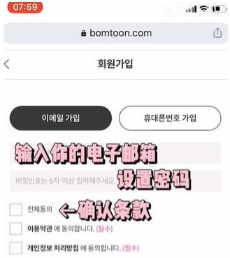 5、随后,输入电子邮箱和密码,并阅读并确认相关条款。