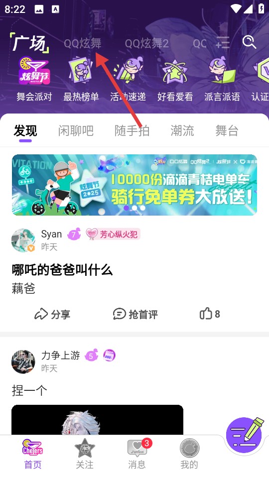 1、用户进入掌上炫舞软件首页,点击我的;