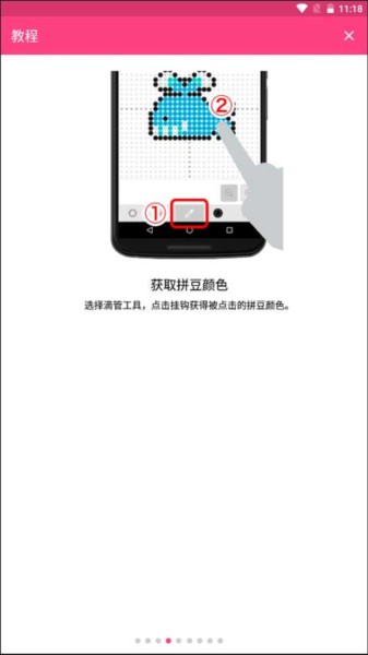 先选择滴管工具,然后在画板上点击任意一个已经放好的豆子,就可以直接吸取并使用它的颜色了。